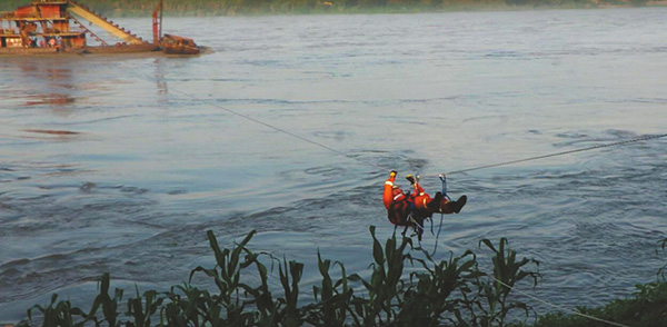 河水暴漲沖走采砂船,消防無人機拋繩營救