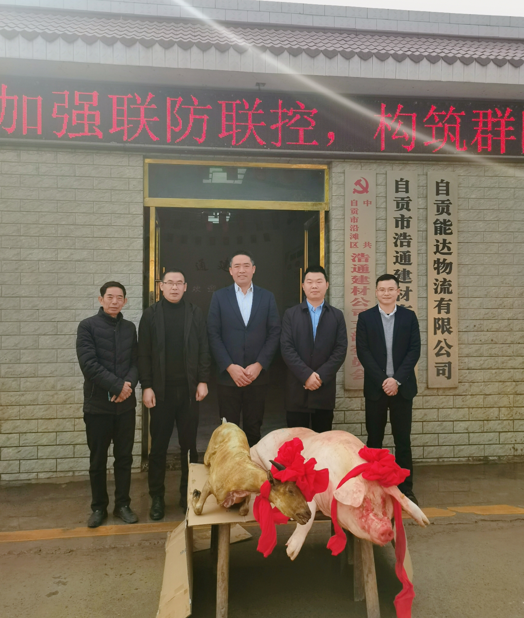 沿灘鎮(zhèn)黨委政府為浩通建材送豬羊表新年祝賀