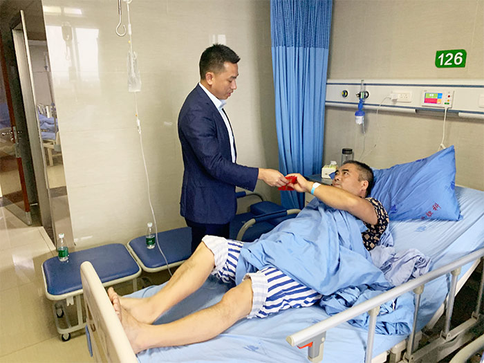 自貢市浩通建材副總經(jīng)理卓支偉和姚利民在得知這一消息后第一時間前往醫(yī)院看望魏師傅,帶上公司所有領導及同事的關心;并以自貢市浩通建材有限公司旗下愛通達基金愛心捐贈一千元,并叮囑他安心養(yǎng)病、好好休息、魏師傅知道公司領導在百忙之中還前來探望也表示衷心的感謝。